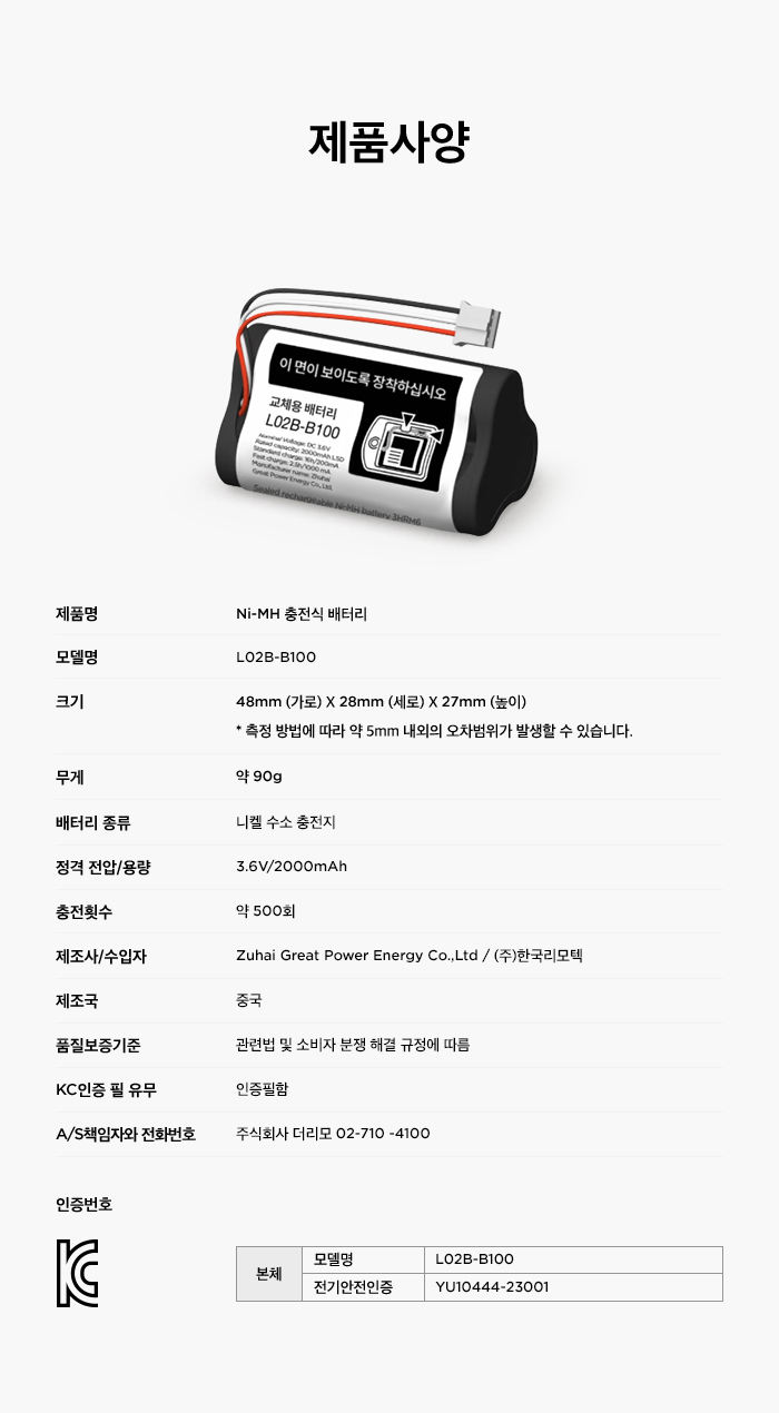 [부속품] 충전식 배터리